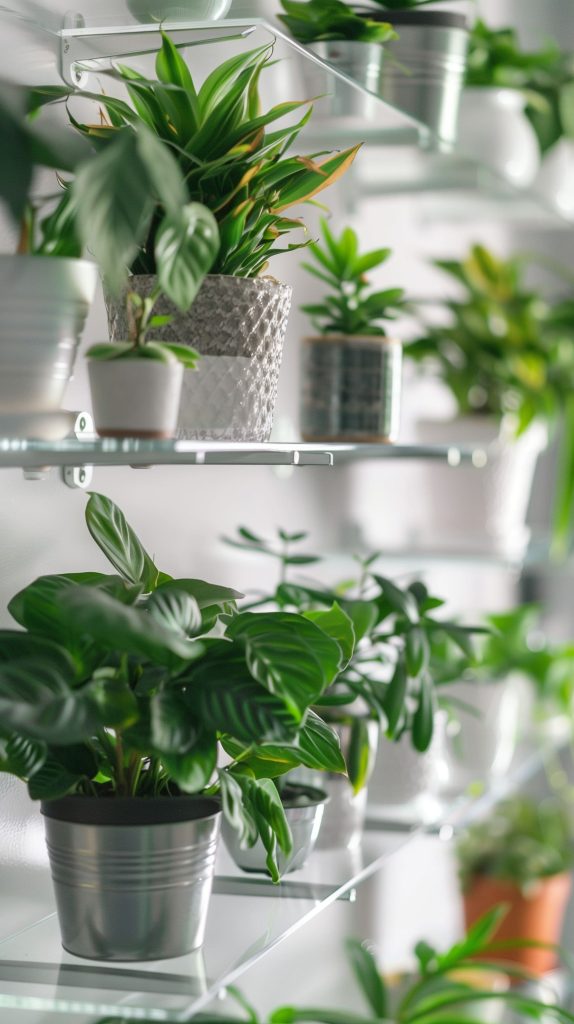 Acrylic shelves offer a sleek and modern look. They are perfect for small plants and can create an illusion of more space.