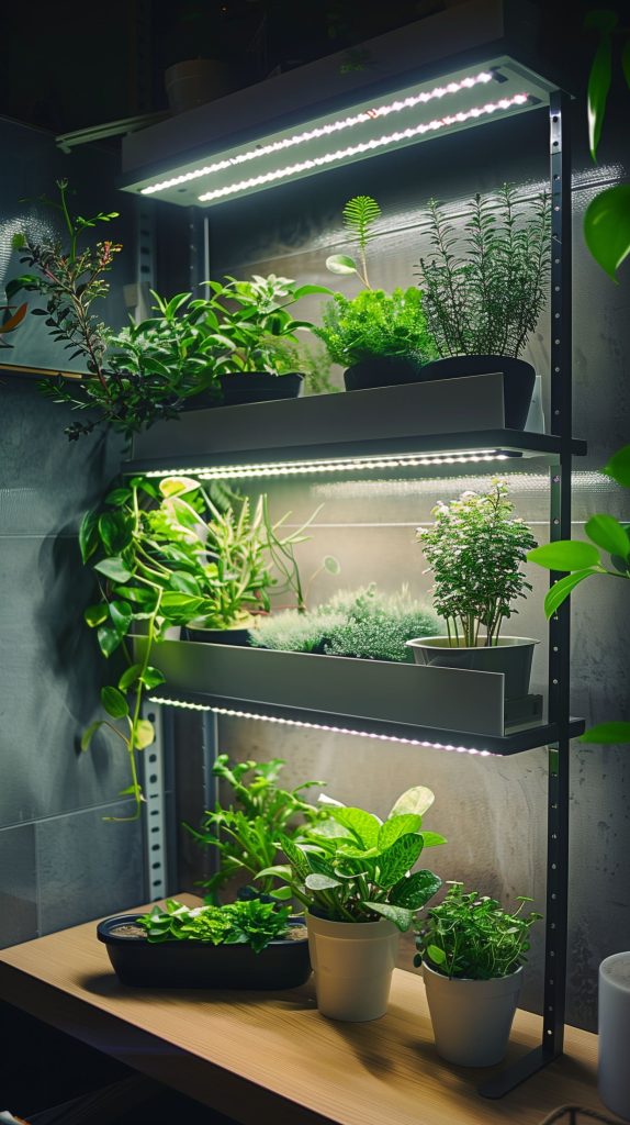Use LED strip lights for energy efficiency and longevity. Combine with glass or acrylic shelves for a modern look. Adjust the lighting color to suit different plants’ needs.