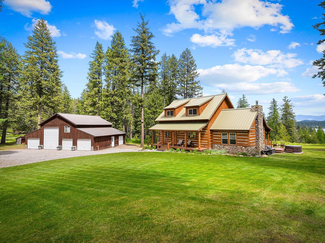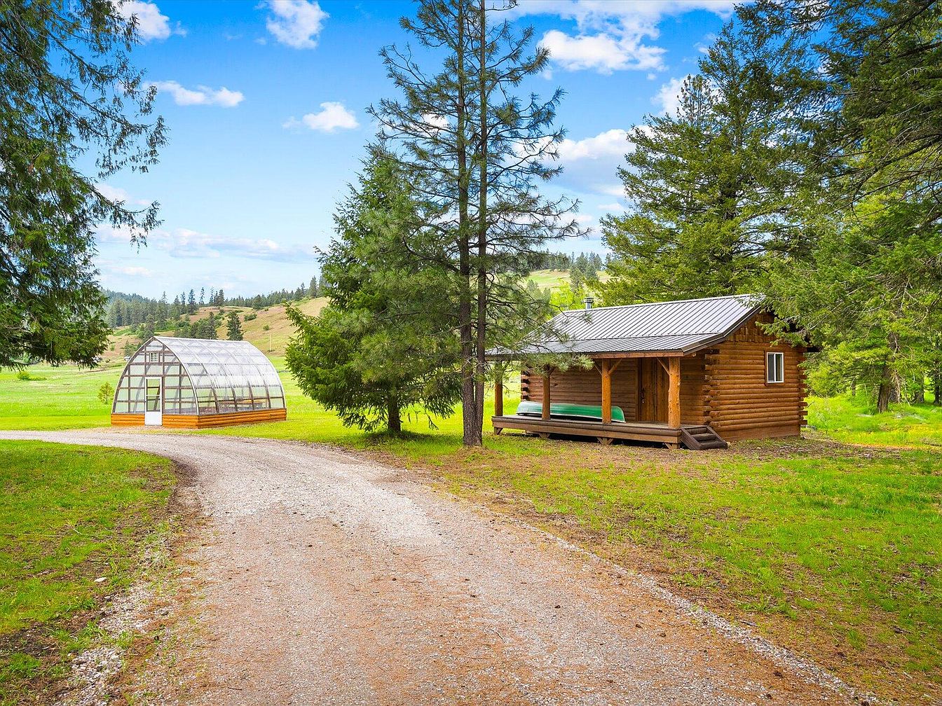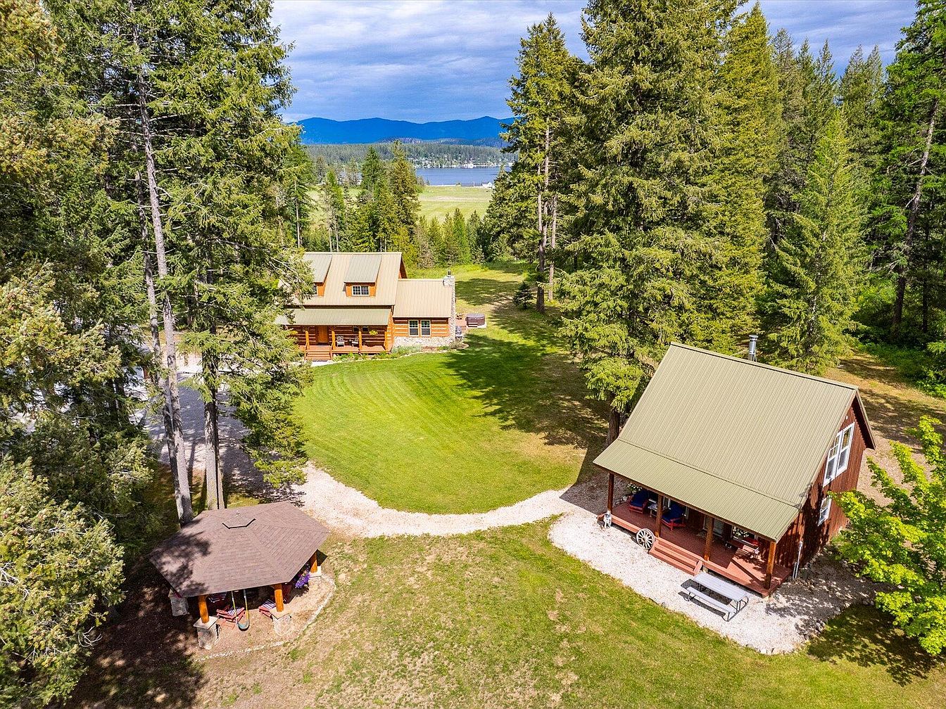 This exquisite mountain retreat showcases a rustic log cabin architectural style, featuring 2-inch slab log siding and a durable metal roof that blends seamlessly with its natural surroundings. Nestled on 20 pristine acres in Valley, Washington, this home offers breathtaking views overlooking Waitts Lake, providing a serene and private setting. Enjoy outdoor living on the oversized porch, perfect for soaking in the hot tub or relaxing by a cozy fire. The property includes a separate 750 square-foot cabin/ADU, ideal for guests or as a rental income opportunity, situated just steps away from a charming, lighted log gazebo. Residents benefit from a year-round creek, a high-producing well, and a picturesque landscape that supports luxurious living and potential self-sufficiency. Listed at $1,150,000, this property represents an exceptional opportunity to own a meticulously crafted mountain home in an idyllic natural environment.