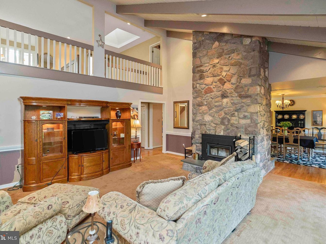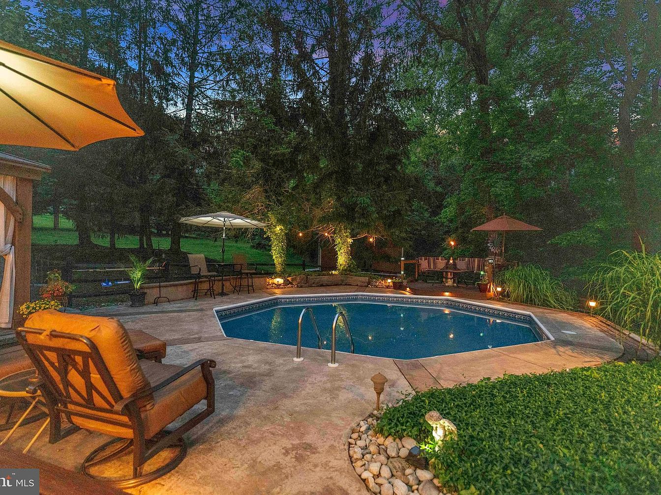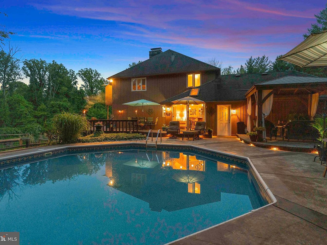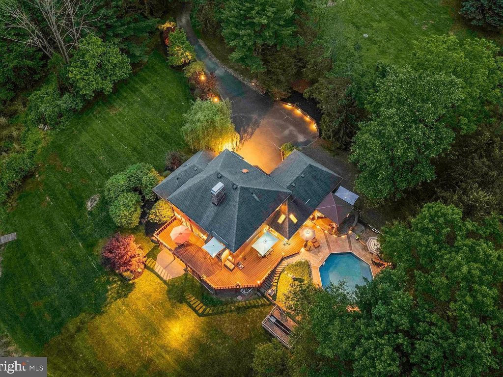 This stunning estate at 3097 Mill Road exemplifies a charming blend of traditional and rustic architectural styles, nestled in the lush, serene surroundings of Bucks County, Pennsylvania. Situated on a spacious 3.67-acre private lot, the home is just minutes from the historic town of Doylestown, offering both tranquility and convenience. Built with a focus on timeless design, this custom 4-bedroom, 3-bathroom residence spans over 3,100 square feet of beautifully finished living space. The interior welcomes you with warm hardwood floors and exposed wood beams, enhancing the cozy ambiance of the great room highlighted by a striking floor-to-ceiling stone fireplace equipped with a wood-burning stove. Outside, the property is an oasis of lush landscaping, lighting, and outdoor living spaces including decks, patios, and the pool area, providing year-round enjoyment. Offered at $1,100,000, this exceptional home combines elegant design, modern updates, and idyllic natural surroundings on a large private parcel, with easy access to local amenities, shopping, dining, and major routes connecting to New Jersey and Philadelphia.