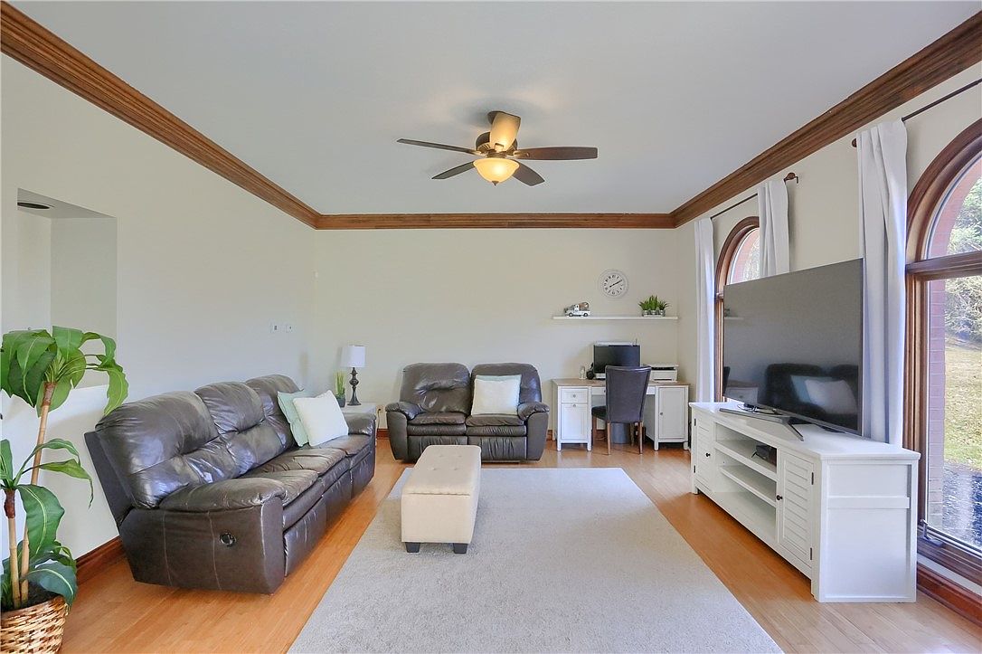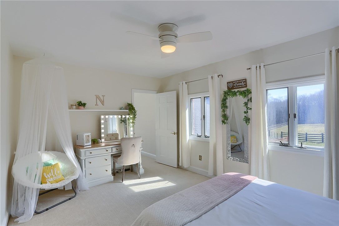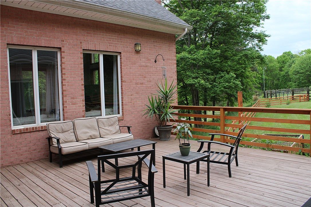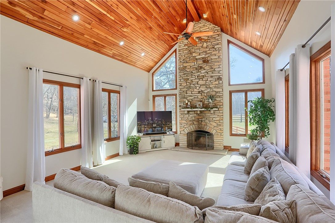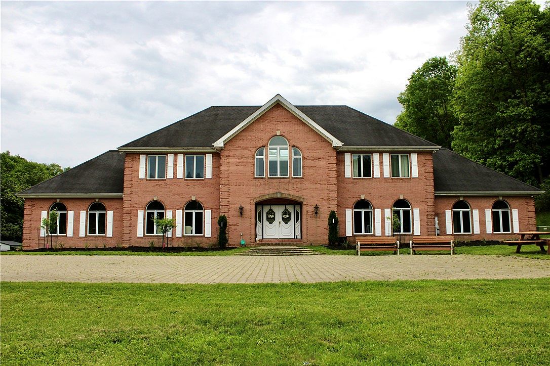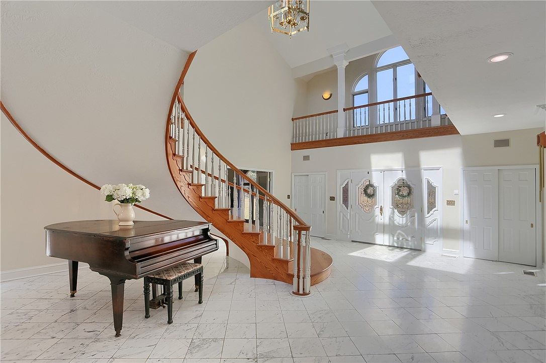 This exquisite estate located in Cranberry Township, PA, offers a luxurious blend of comfort and privacy on a sprawling 10-acre plot. The home features a grand architectural style with a stately brick facade and a classic, symmetrical design. Inside, an updated 4-bedroom, 3-bath residence welcomes you with a majestic marble foyer highlighted by soaring 24-foot ceilings and an elegant curved staircase, setting a tone of refined elegance. The gourmet eat-in kitchen is equipped with stainless steel appliances and dual refrigerators, ideal for entertaining guests in the adjacent formal dining room. A spacious 5-car garage provides ample space for vehicles and equipment. Listed at $1,850,000, this remarkable property promises luxury living on a grand scale.