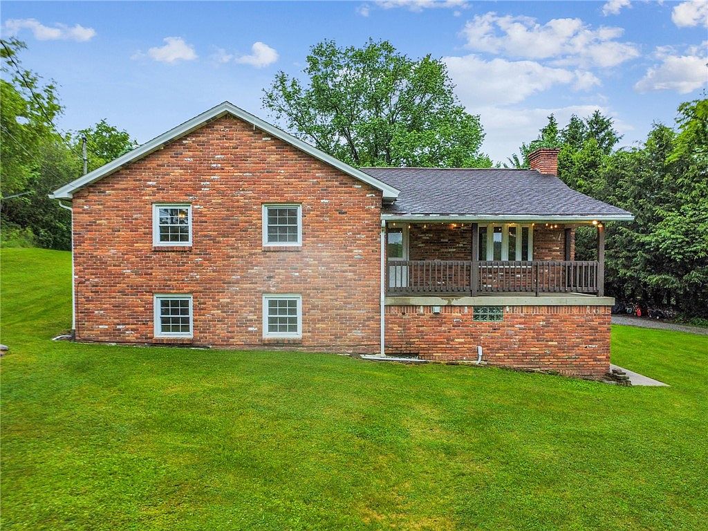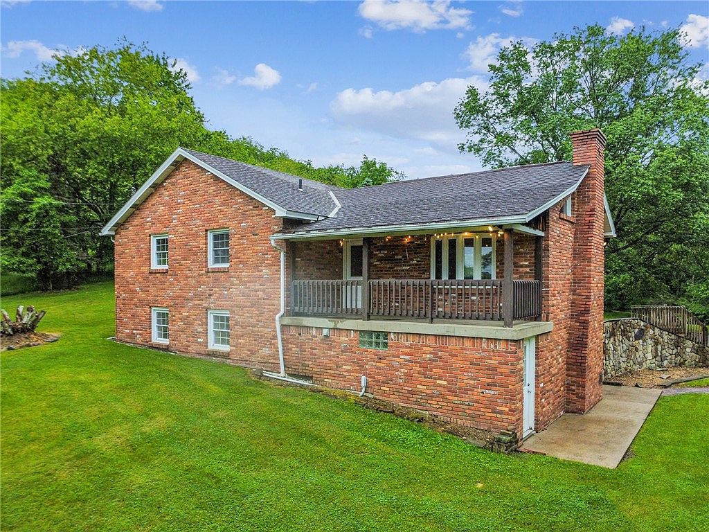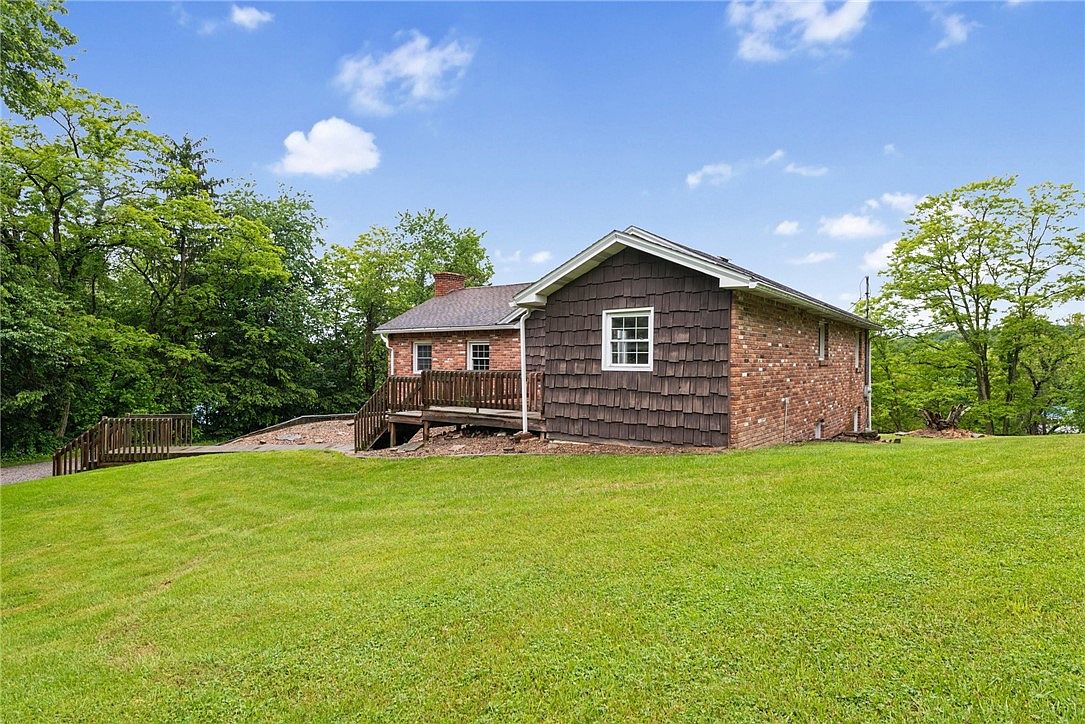 This charming ranch-style home is nestled on a tranquil 1.5-acre wooded lot in Kittanning, PA, offering privacy and ample space. The home’s architectural style is classic ranch with a brick exterior, highlighted by a covered front porch and a spacious deck that overlooks the lush greenery. Inside, the sunken living room is a standout feature with vaulted ceilings accented by exposed wood beams and a cozy brick fireplace, perfect for both relaxation and entertaining guests. Listed at $249,900, this property combines comfortable living with a serene, wooded setting and ample outdoor space, making it an ideal retreat.