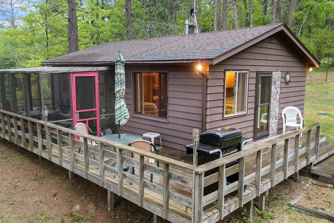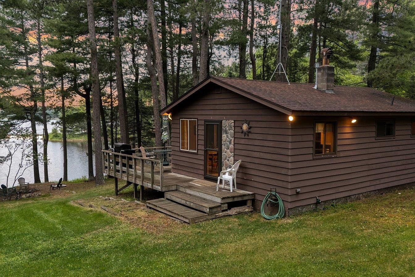 Secluded Lakefront Cabin Home in Makinen with Spacious Deck and Scenic Views (Floor Plan Included)