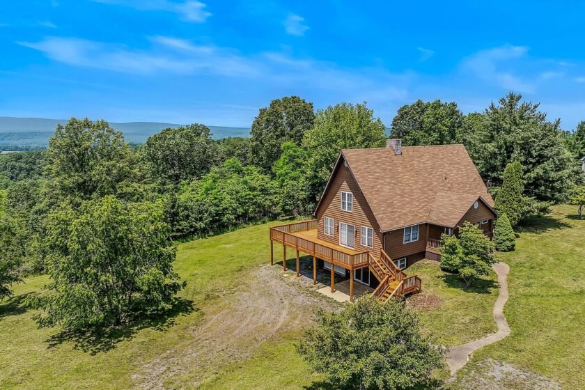 This move-in-ready chalet, located in Berkeley Springs, WV, offers breathtaking mountain views from every angle and is situated on 3.58 unrestricted acres, providing a serene and private setting. The architectural style of the home reflects a classic chalet design characterized by its steep gable roof and natural wood exterior, recently updated with newly stained cedar siding. The listing price for this charming 3-bedroom, 3-bathroom chalet is $420,000.