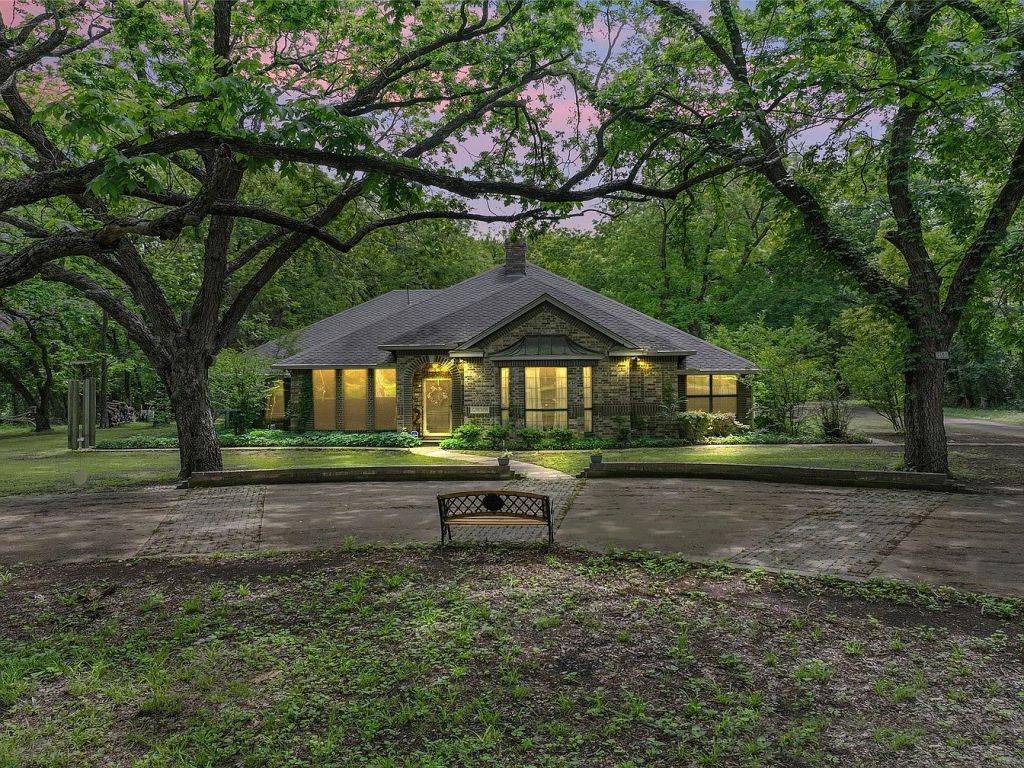 This elegant estate home in Midlothian, Texas, boasts a distinctive architectural style that blends classic Ranch elements with modern conveniences. Nestled on a sprawling 10-acre plot, this 3,816 square foot residence is surrounded by hundreds of mature trees and bordered by a serene natural creek, offering unparalleled privacy and a tranquil, nature-filled setting akin to living within a private campground or nature park. Additional highlights include a spacious game room that can double as a boardroom, spacious living areas for family and entertaining, and natural outdoor features with creek sounds and wooded trails. The property supports a rural lifestyle with modern comforts, making it a perfect forever home, multi-generational living space, or unique homestead. Located conveniently close to highways and shopping and within the Midlothian Texas School district, this exceptional property is listed at $1,500,000.