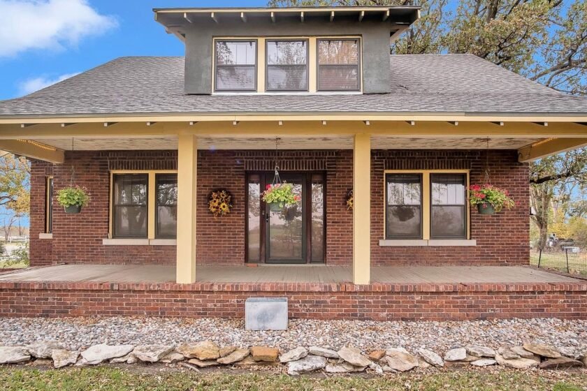 This beautiful brick two-story bungalow is a charming century home built in 1920. The property spans just under 5 acres and includes a bonus guest house built in 1950. The main home boasts four bedrooms, two bathrooms, a formal dining room, updated kitchen and baths, and a cozy family room with a wood-burning fireplace. Recent additions include a 2018-built 51×36 shop and a rustic 60×50 barn dating before the main home. With a total of 6 bedrooms, 3 bathrooms, and over 3,400 sq ft, the property is listed for $485,000. Conveniently located near Newton, Hutchinson, and Wichita, this spacious home elegantly blends historic charm with modern amenities.