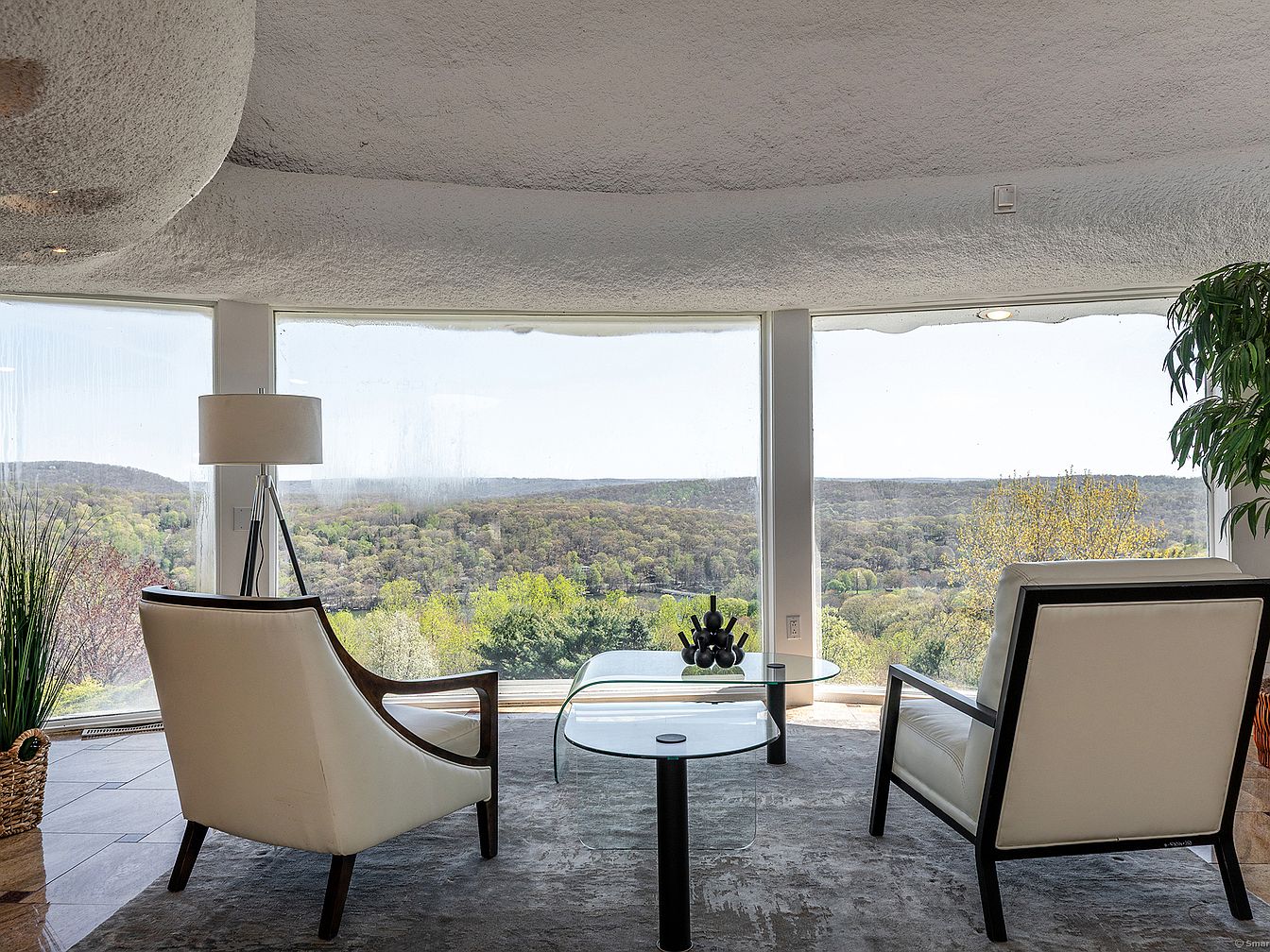 Welcome to Starcastle, a unique and architecturally significant estate located in New Fairfield, Connecticut. This remarkable 23.5-acre property is distinguished by its visionary design by renowned architect Roy Mason. The home showcases a distinctive, modern style characterized by smooth, flowing white exterior walls and rounded forms that blend naturally with the surrounding landscape. Built with a focus on spaciousness and versatility, the four-bedroom, five-bathroom residence is ideal for entertaining, multi-generational living, or creative pursuits. The listing price is $1,500,000, offering a rare opportunity to own a vast 23.5-acre retreat just 71 miles from New York City.