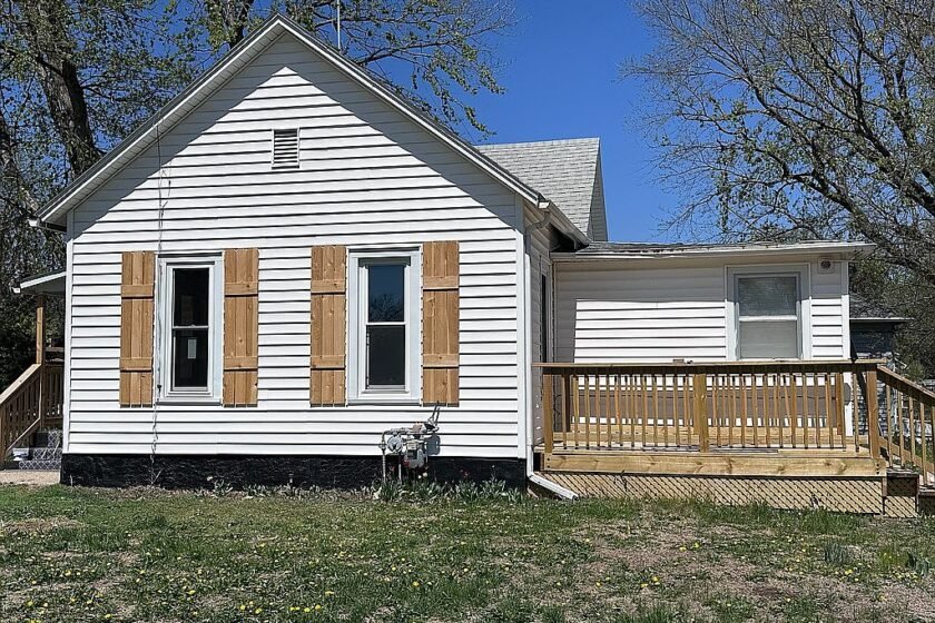 This charming 2-bedroom, 2-bath home merges early 20th-century architectural style with modern renovations, enhancing comfort while preserving classic appeal. Built around the early 1900s, it has been fully updated, featuring new wooden shutters and a fresh exterior with white siding and a welcoming wooden deck. Positioned on a tranquil street with mature trees, this residence offers a serene outdoor living space. Recent renovations include comprehensive interior and exterior upgrades, making it move-in ready. Priced at $135,000, it is ideal for first-time buyers or those looking to downsize, blending historical character with contemporary conveniences efficiently.