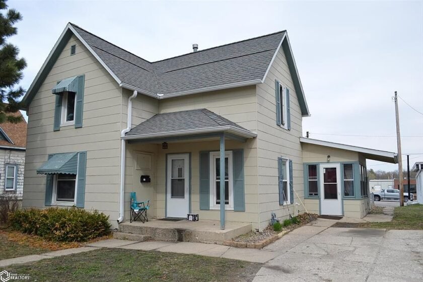 This charming century home presents a great opportunity for homeowners or investors. Featuring a classic early 20th-century architectural style with a spacious front porch and a steep gable roof, it offers two bedrooms with new carpeting and a large living room. The open kitchen and main floor laundry add modern convenience. A 2-car detached garage with alley access and a fenced rear yard enhance functionality. Priced at $74,900, this home is perfect for those seeking a solid investment in a central location. Although the exact build year isn’t provided, the style suggests early 1900s heritage with recent upgrades in flooring and maintenance.