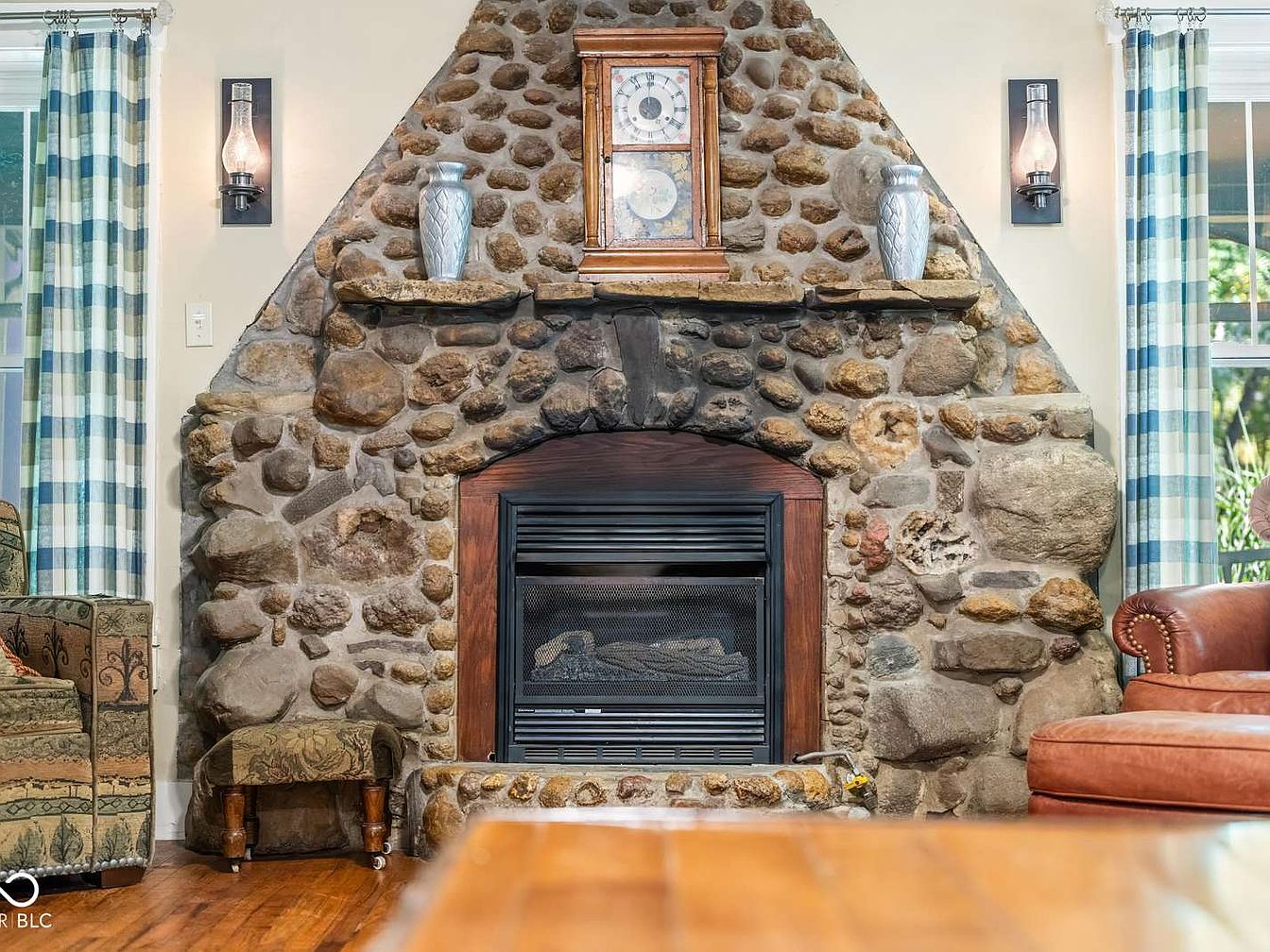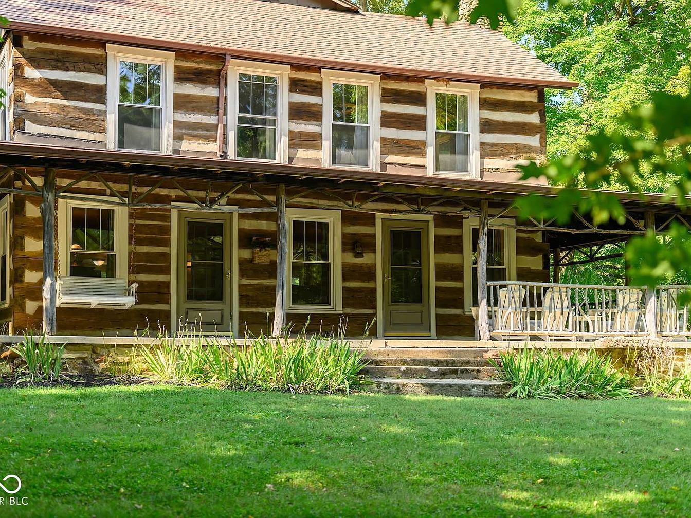This remarkable century-old log cabin, located on Hoover Rd in Nashville, Indiana, exemplifies rustic American architecture with its classic wraparound porch and shaker cabinetry, offering a unique blend of historic allure and modern comfort. Built in 1920, it sits on a sprawling 10-acre lot and includes 2,928 sq ft of living space, featuring four bedrooms, three full baths, and one half bath. The property is coupled with “The Old Barn at Brown County,” an event venue approved for up to 200 guests, making it ideal for weddings and gatherings. Currently listed at $1,575,000, this meticulously maintained home invites relaxation by the fireplace, hot tub, or garden pond, and represents a rare ownership opportunity.