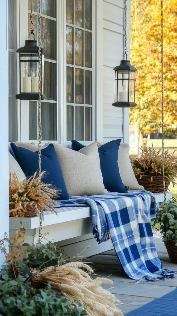 Cozy Blue Porch Fall Decor