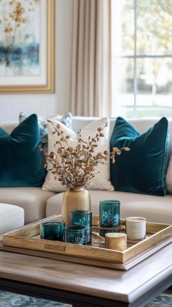 Elegant Blue Velvet Fall Living Room