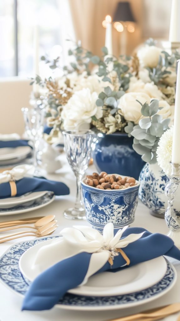 Blue and White Table Setting for Fall