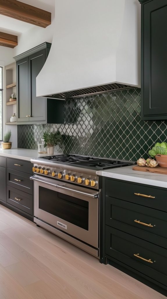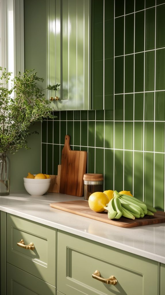 Transform your kitchen into a vibrant and refreshing space with stunning green backsplash designs. Whether you’re seeking a bold, eye-catching statement or a subtle pop of color, green backsplashes offer a versatile range of styles to suit any kitchen aesthetic. From sleek emerald tiles that bring modern sophistication to soft sage hues that evoke a calm, natural feel, these green backsplash ideas blend perfectly with various materials like wood, marble, and stainless steel. Explore geometric patterns, glossy finishes, and organic textures that elevate your kitchen’s look, combining style with functionality. These designs will inspire you to add a touch of greenery to your home, creating a space that feels both lively and inviting. Perfect for any interior style, a green backsplash breathes life into your kitchen, enhancing its charm and contemporary appeal