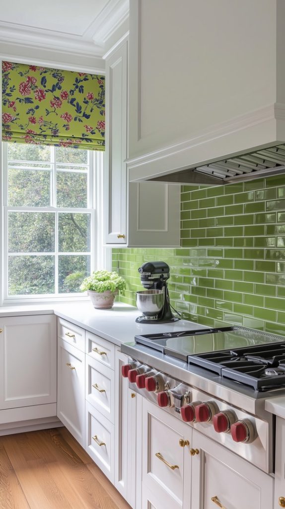 Bold Green Backsplash Paired with Natural Light