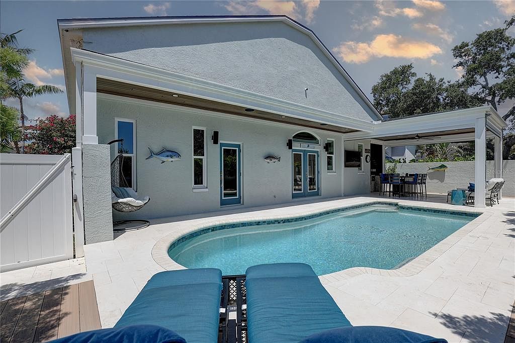 This beautiful home located in the sought-after community of Tierra Verde, FL, features a contemporary architectural style emphasizing clean lines, a neutral color palette, and a welcoming single-story layout. The residence is intelligently designed with solid core doors for privacy and enhanced sound insulation, hurricane impact windows and doors for safety and energy efficiency, and blackout blinds in two rooms for optimal light control. Additional modern touches such as an Elkay water filtration system and a state-of-the-art security system ensure comfort and peace of mind. Accessibility is a priority with wheelchair access at the rear entrance. Outdoors, the private oasis continues with a travertine pool deck surrounding a heated saltwater pool, ideal for relaxing or entertaining year-round, complemented by an outdoor grill and lush mature landscaping. The listing price for this exceptional property is $1,295,000.