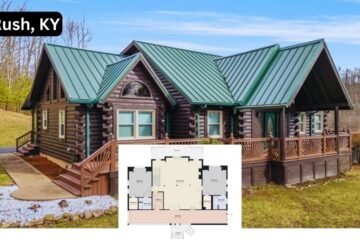 Step inside this charming 3-bedroom log cabin retreat in Kentucky, set on 8.33 acres, offering rustic elegance and a cozy floor plan.