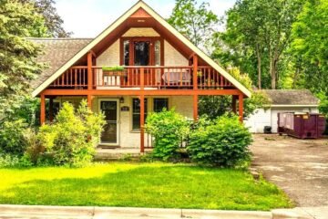 Gabled roof, a welcoming porch, and a spacious balcony.
