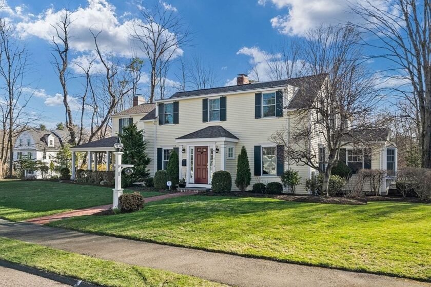 This inviting Colonial-style home in Wellesley, is situated in the sought-after Dana Hall neighborhood. Featuring a farmer’s porch and gracious entry, the house blends historic charm with modern amenities. The interior includes a fireplace in the living room, wainscoting in the dining room, and an open concept kitchen/family room with stainless steel appliances and granite countertops. The home offers five spacious bedrooms, including a primary suite with a spa-like bath. A finished lower level includes a playroom and a four-car garage. Located on a cul-de-sac overlooking conservation land, the property is priced at $2,500,000 and enjoys proximity to town amenities and new schools.