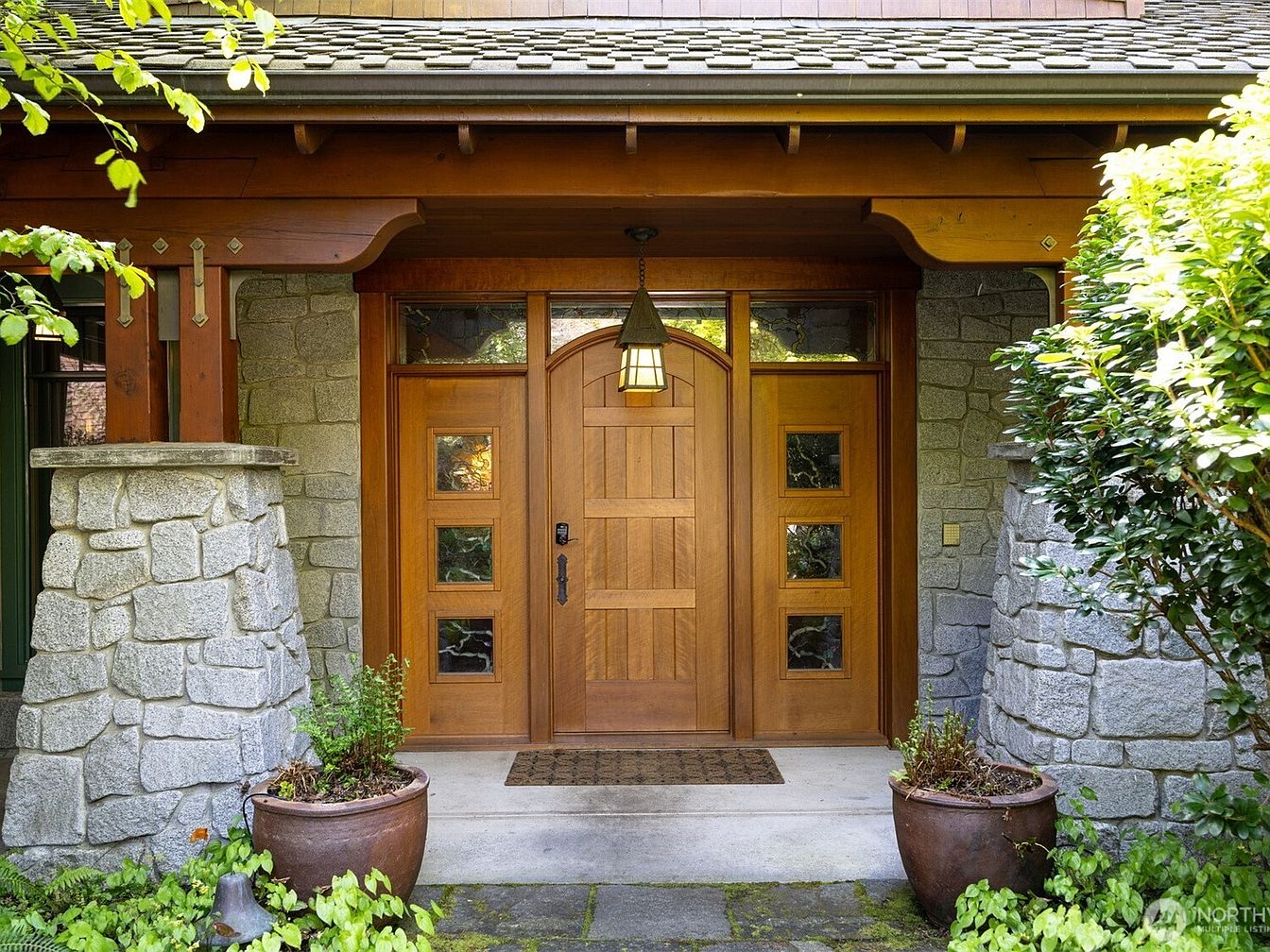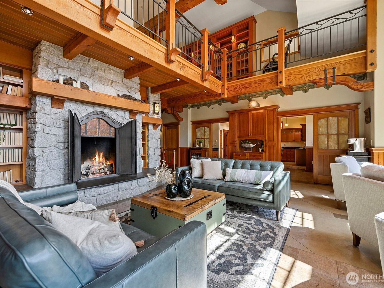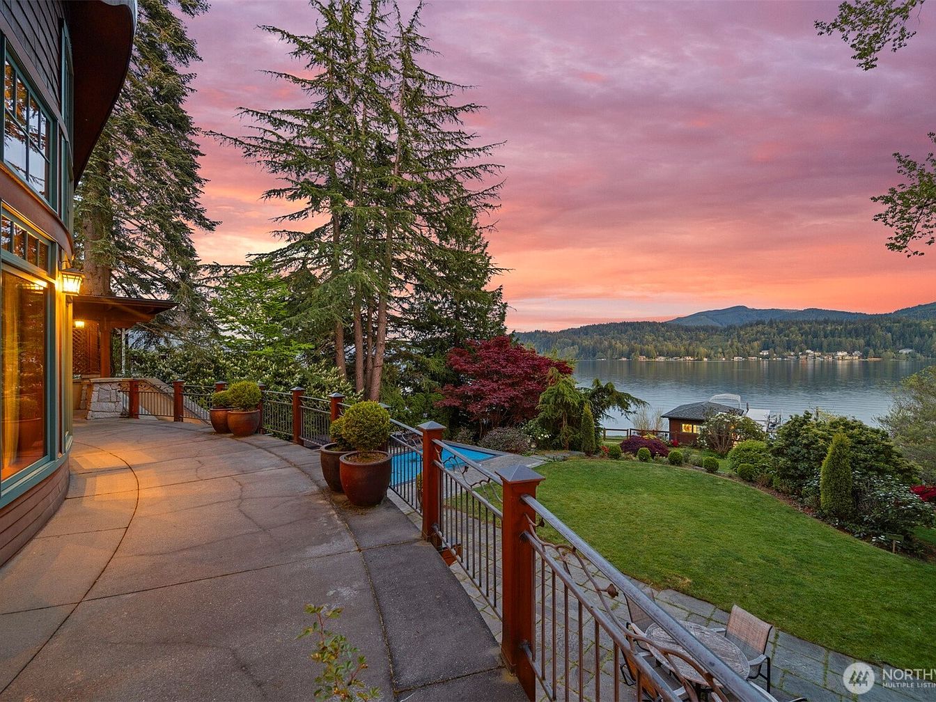 This exquisite home, located in Bellingham, WA, on the scenic shores of Lake Whatcom, is an architectural masterpiece that seamlessly blends Old World elegance with exceptional custom craftsmanship. Spanning a generous 6,800 square feet, the estate features 5 spacious bedrooms and 5 bathrooms, including a distinctive turret-designed owner’s suite, exemplifying unique and sophisticated design elements. Recent renovations include a remodeled 2-bedroom guest house, adding extra privacy and comfort for visitors. The estate is situated on a prized 100-foot stretch of sunny, south-facing shoreline and boasts extensive luxury amenities such as a private beach with dock and boathouse, terraced landscaping, and a pool. The home’s structural beauty is further highlighted by priceless recycled timber beams and granite walls that add both character and durability. Additional functional features include a 3-bay shop/garage and a separate 2-car garage, ideal for accommodating vehicles, toys, and workspace. Priced at $5,050,000, this Moceri-built icon represents a rare find with unparalleled privacy and stunning waterfront living.