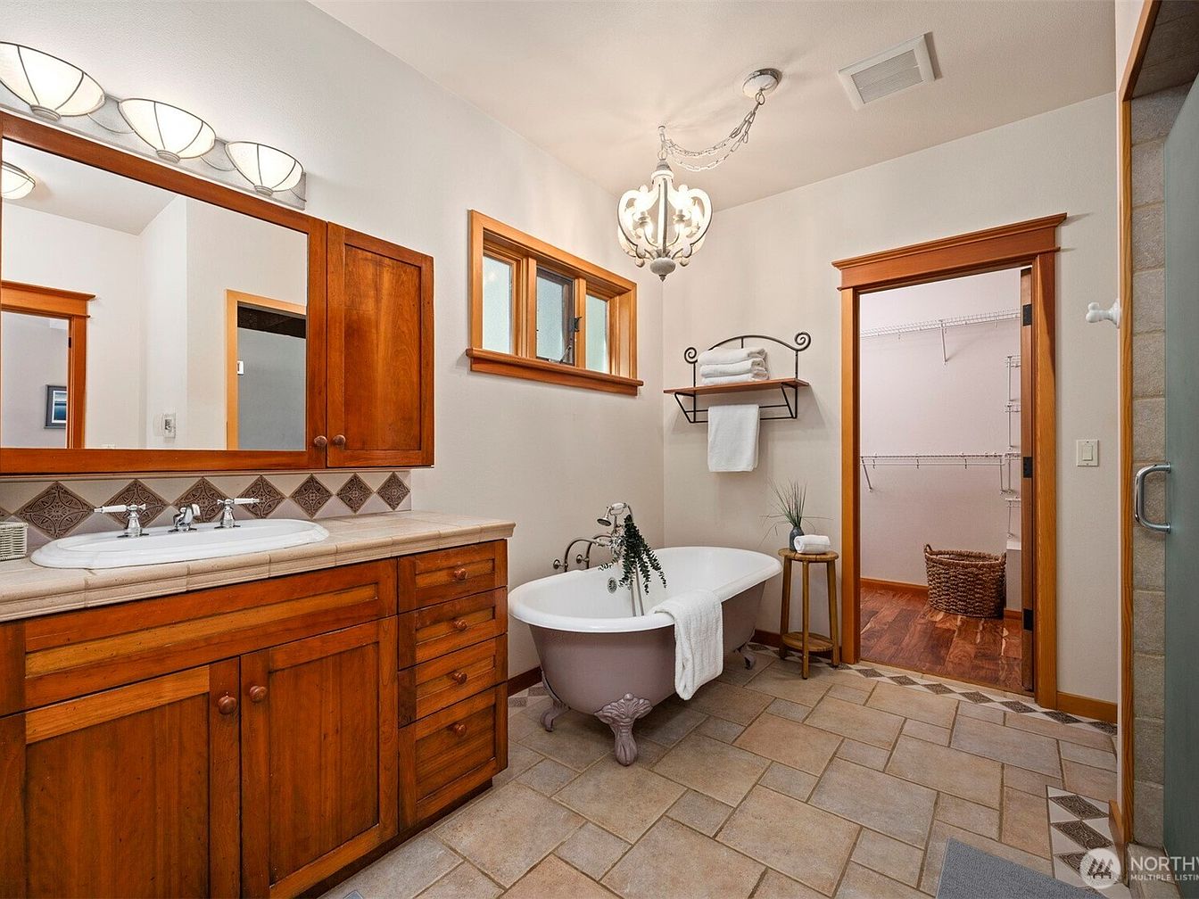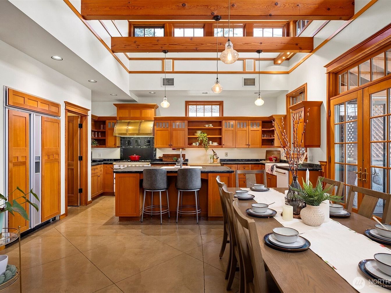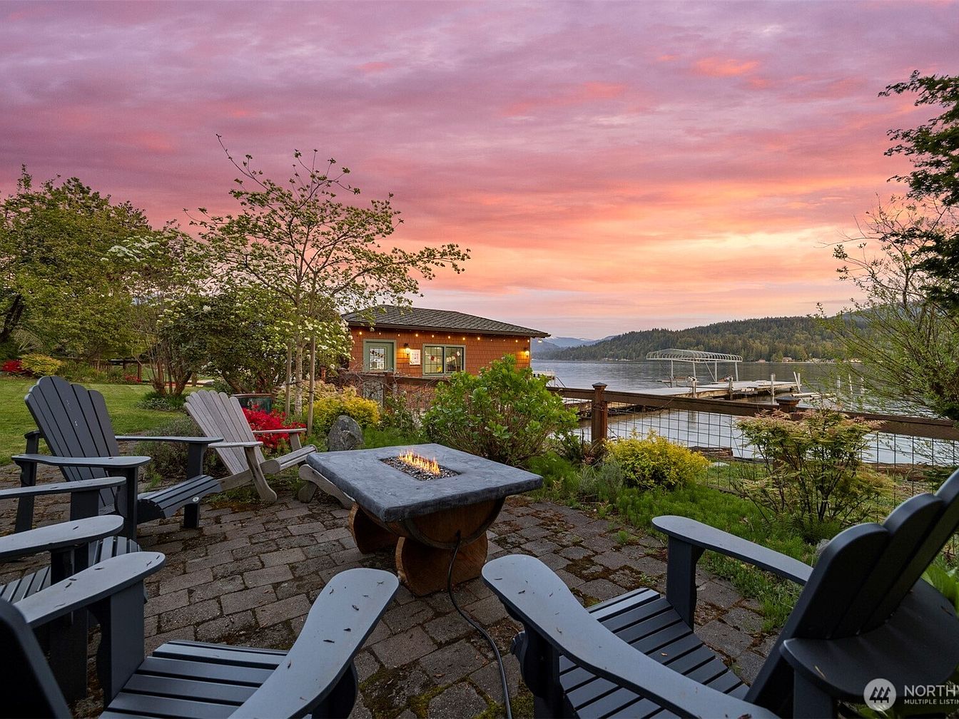 This exquisite home, located in Bellingham, WA, on the scenic shores of Lake Whatcom, is an architectural masterpiece that seamlessly blends Old World elegance with exceptional custom craftsmanship. Spanning a generous 6,800 square feet, the estate features 5 spacious bedrooms and 5 bathrooms, including a distinctive turret-designed owner’s suite, exemplifying unique and sophisticated design elements. Recent renovations include a remodeled 2-bedroom guest house, adding extra privacy and comfort for visitors. The estate is situated on a prized 100-foot stretch of sunny, south-facing shoreline and boasts extensive luxury amenities such as a private beach with dock and boathouse, terraced landscaping, and a pool. The home’s structural beauty is further highlighted by priceless recycled timber beams and granite walls that add both character and durability. Additional functional features include a 3-bay shop/garage and a separate 2-car garage, ideal for accommodating vehicles, toys, and workspace. Priced at $5,050,000, this Moceri-built icon represents a rare find with unparalleled privacy and stunning waterfront living.