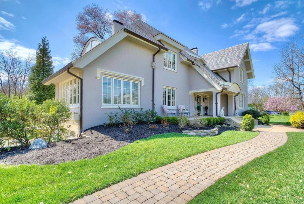This beautifully landscaped exterior is complemented by a well-maintained front yard and an inviting paver pathway leading to the front entrance. The manicured shrubs and greenery add a refreshing touch, enhancing the curb appeal of this elegant home. The soft curves of the path provide a welcoming feel, guiding visitors toward the front steps. The architectural details of the house, with its sophisticated rooflines and large windows, are perfectly framed by the lush, neat landscaping, creating an ideal first impression.