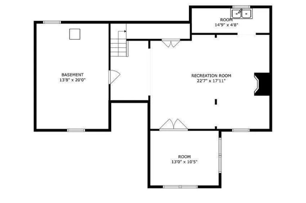This well-designed ground floor offers a combination of functionality and flexibility. The expansive recreation room serves as the central hub, perfect for a home theater, game area, or lounge space. Adjacent to it, a separate room can be used as an office, guest suite, or home gym. The basement storage area provides ample space for seasonal items. Additionally, a compact utility room with a sink adds convenience. This lower level offers endless possibilities to fit various lifestyle needs.