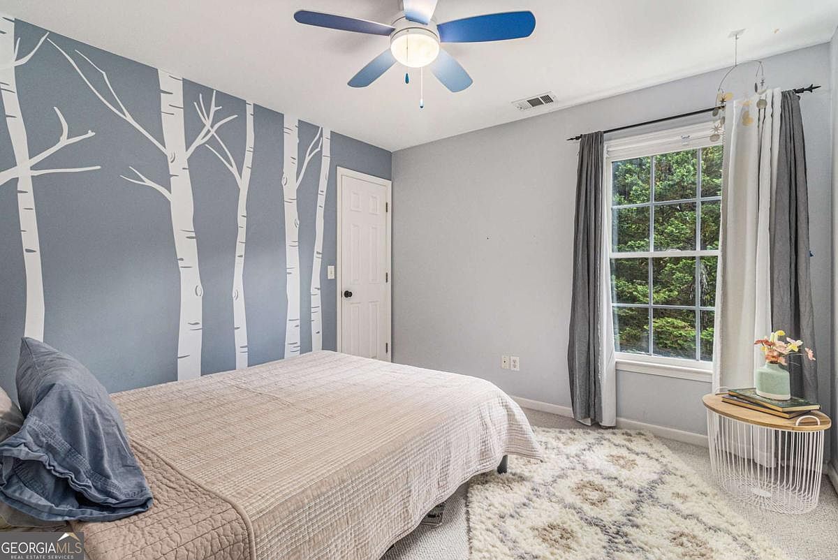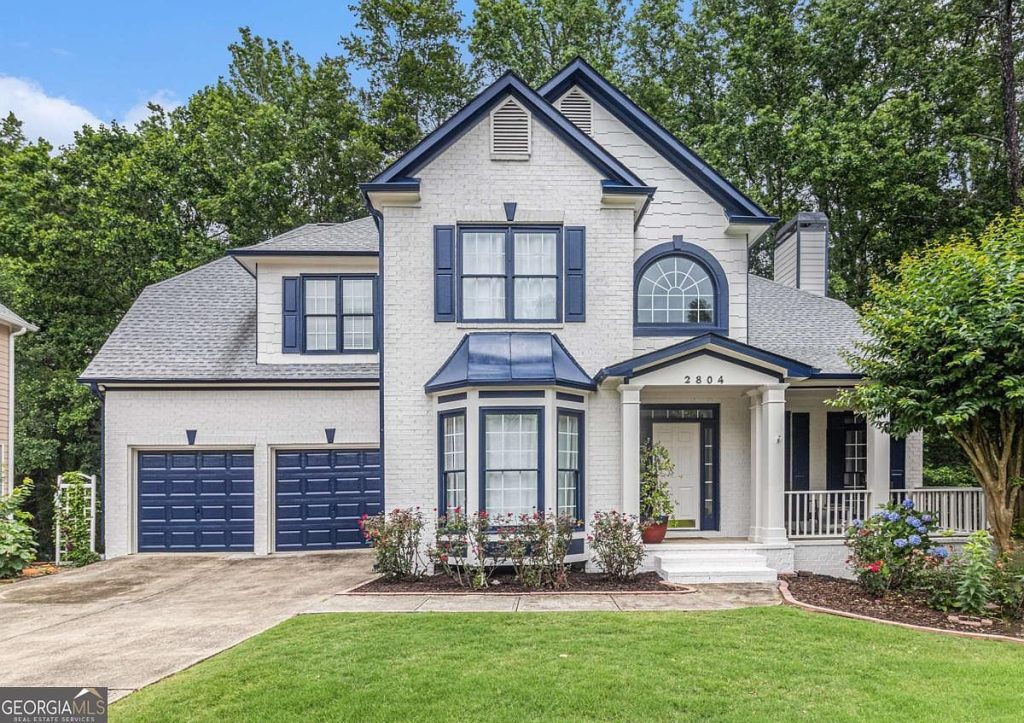 This elegant home, located in Marietta, GA, exemplifies a traditional architectural style with its classic brick facade, gabled roof, and charming details such as the bay window and elegant porch columns. Situated on a quiet cul-de-sac lot, the house offers both privacy and a serene environment just a short walk from a local park, nature trails, and community amenities including a pool, fishing pond, and a brand-new playground, ideal for outdoor enjoyment and family activities. Priced at $599,000, this residence boasts a thoughtfully designed open floor plan that connects the kitchen with the living and dining areas, creating an inviting atmosphere perfect for entertaining.