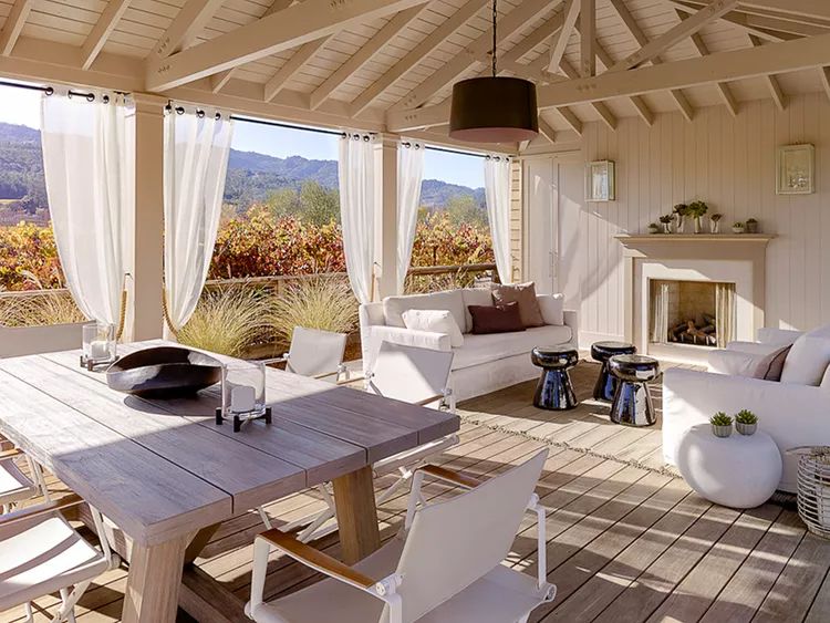 Curtains aren’t just for indoors—they can work beautifully in outdoor spaces, too. Install light, breezy curtains around a covered porch or pergola to add softness and diffuse harsh sunlight. Choose airy fabrics in neutral tones that complement your furniture and decor. This simple addition not only elevates the look of your space but also provides shade and privacy, creating a relaxing and refined atmosphere.
