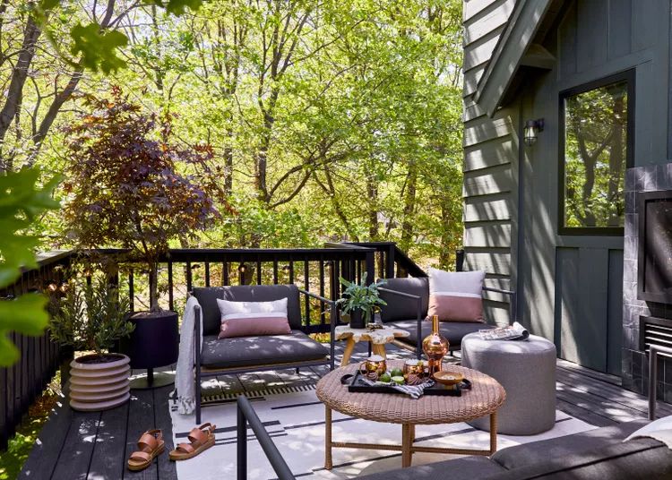 Create a serene and inviting outdoor space with moody color tones like deep gray, navy blue, or forest green. These darker shades can make a small space feel cozy and intimate while maintaining a sophisticated vibe. Pair with contrasting soft pinks or warm neutrals to balance the palette and add a touch of elegance.