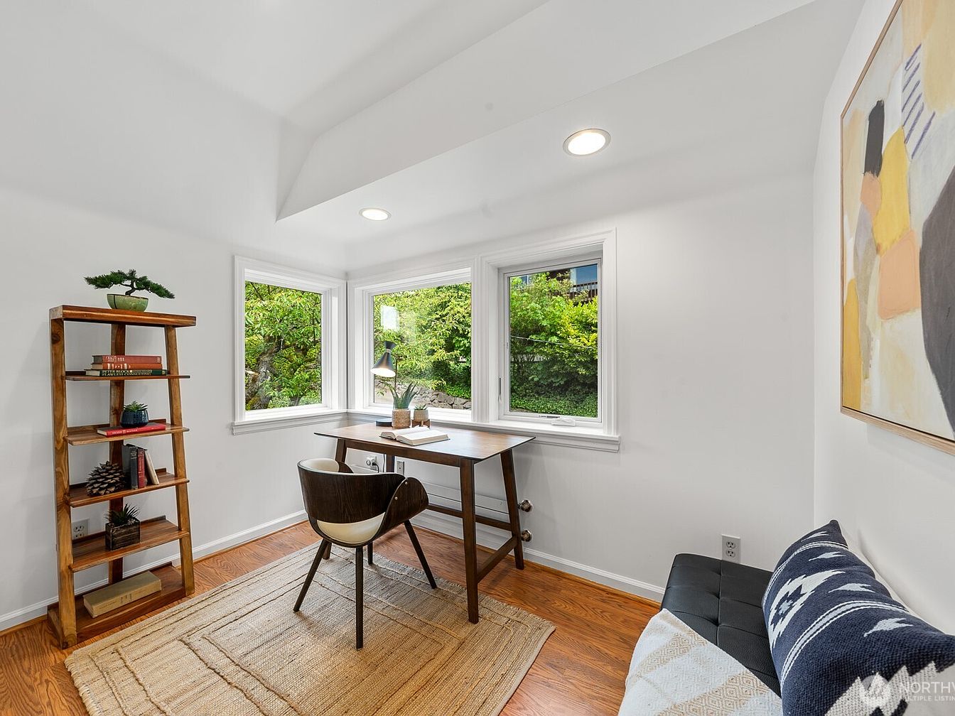 This charming Tudor-style home is beautifully situated on an extra-large lot in the heart of the Broadview neighborhood in Seattle, WA. The residence features elegant architectural details typical of Tudor homes, such as steeply pitched gable roofs and decorative half-timbering. Inside, the home has been freshly updated with new interior paint and newly refinished hardwood floors that enhance its timeless elegance. Offering 4 spacious bedrooms and 3 bathrooms, the primary suite serves as a private retreat for relaxation. Listed at $1,325,000, this picturesque property offers an idyllic sanctuary with abundant space for both indoor and outdoor living.
