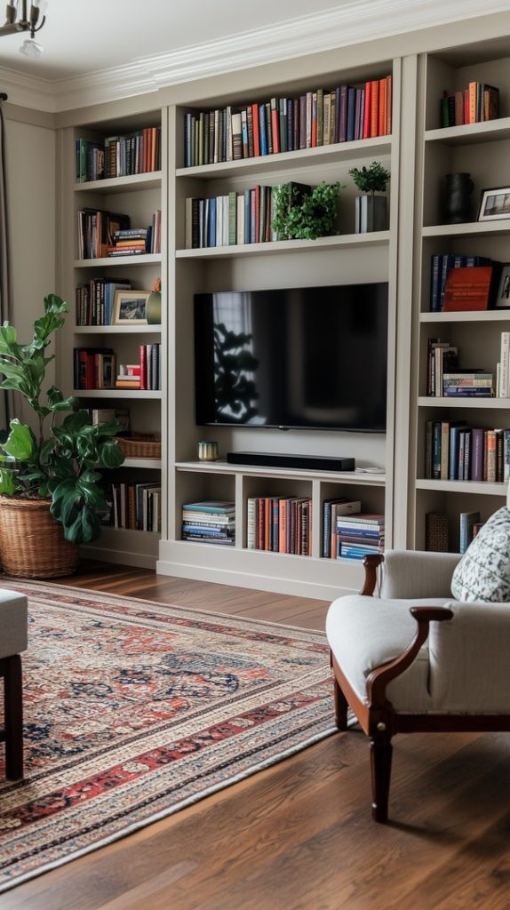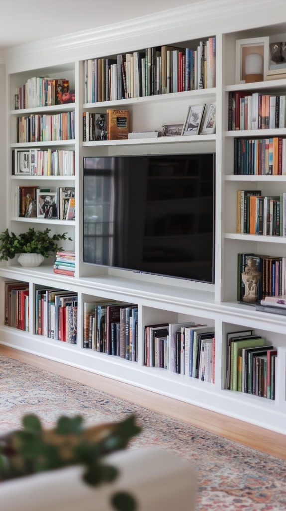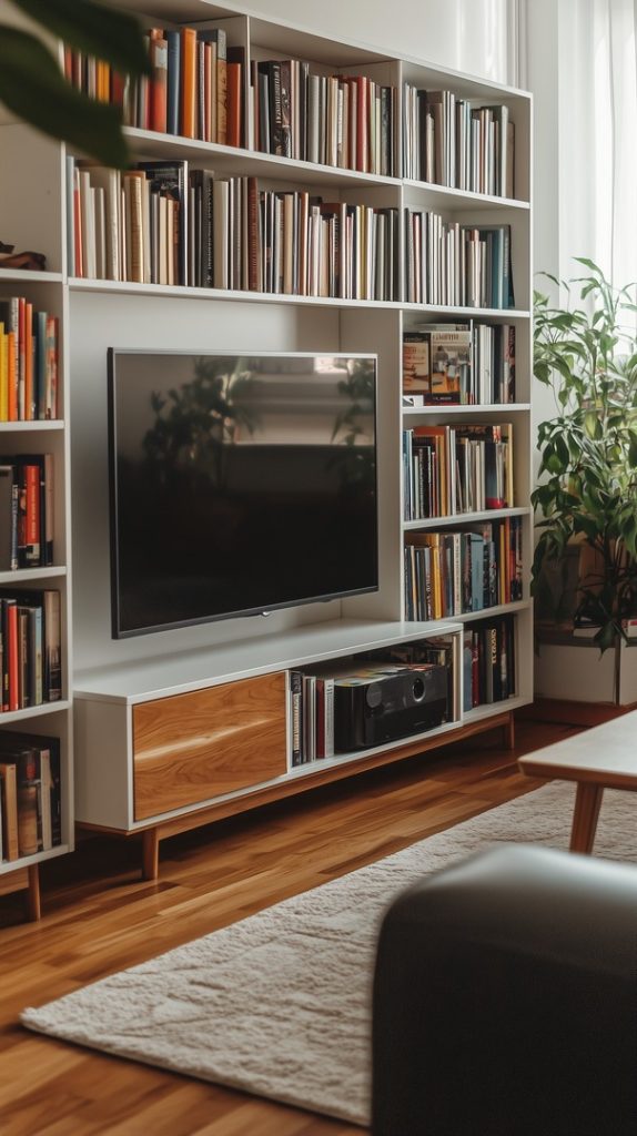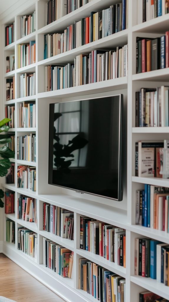 Eclectic Bookshelf TV Wall with Built-In Charm