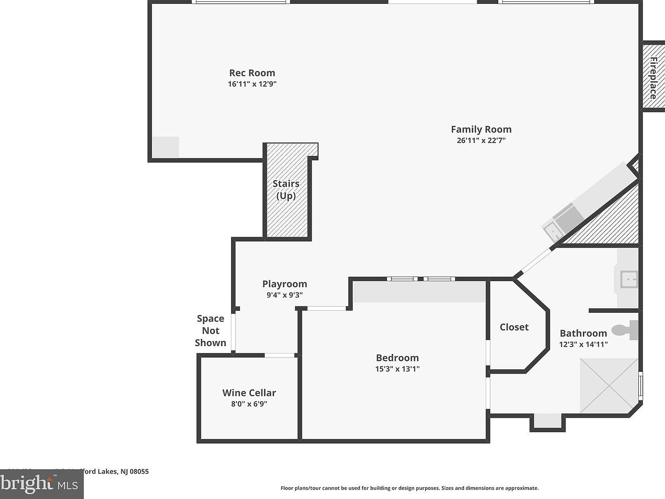 This spacious lower level offers a versatile layout designed for family living and entertainment. The largest area, the Family Room, measures approximately 27 by 23 feet, ideal for gatherings or relaxation with a nearby fireplace. Adjacent to the Family Room is a cozy Rec Room, providing an additional recreational space. A dedicated Playroom next to the bedroom creates a child-friendly zone, while the Wine Cellar adds a touch of luxury and storage functionality. The bedroom is sizable, accompanied by a private bathroom and a closet, enhancing convenience and privacy on this level. Access is provided via stairs leading up to the main floor.