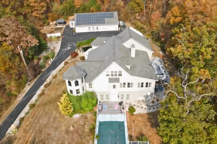 This aerial view showcases Kane’s impressive estate with breathtaking views and ample privacy.